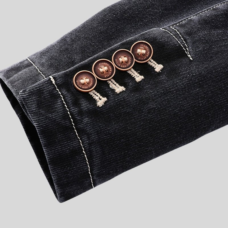 • Notched Lapels: Classic collar with loop detail.